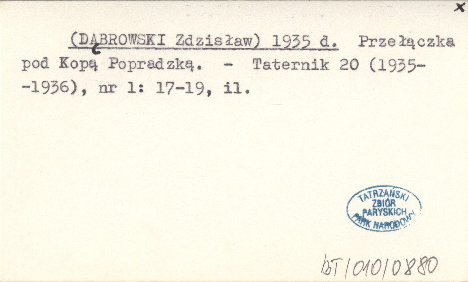 (DĄBROWSKI Zdzisław) 1935 d Przełączka pod Kopą Popradzką.