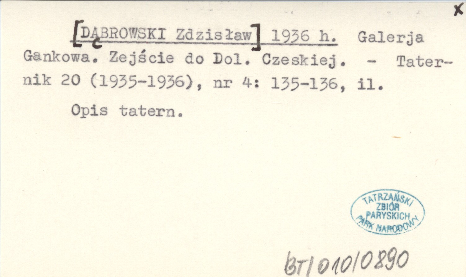 [DĄBROWSKI Zdzisław] 1936 h Galerja Gankowa. Zejście do Dol. Czeskiej.