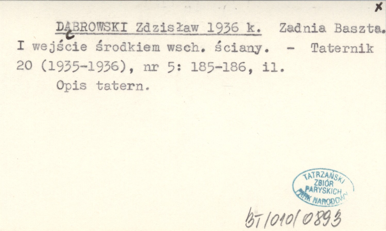 DĄBROWSKI Zdzisław 1936 k Zadnia Baszta. I wejście środkiem wsch. ściany.