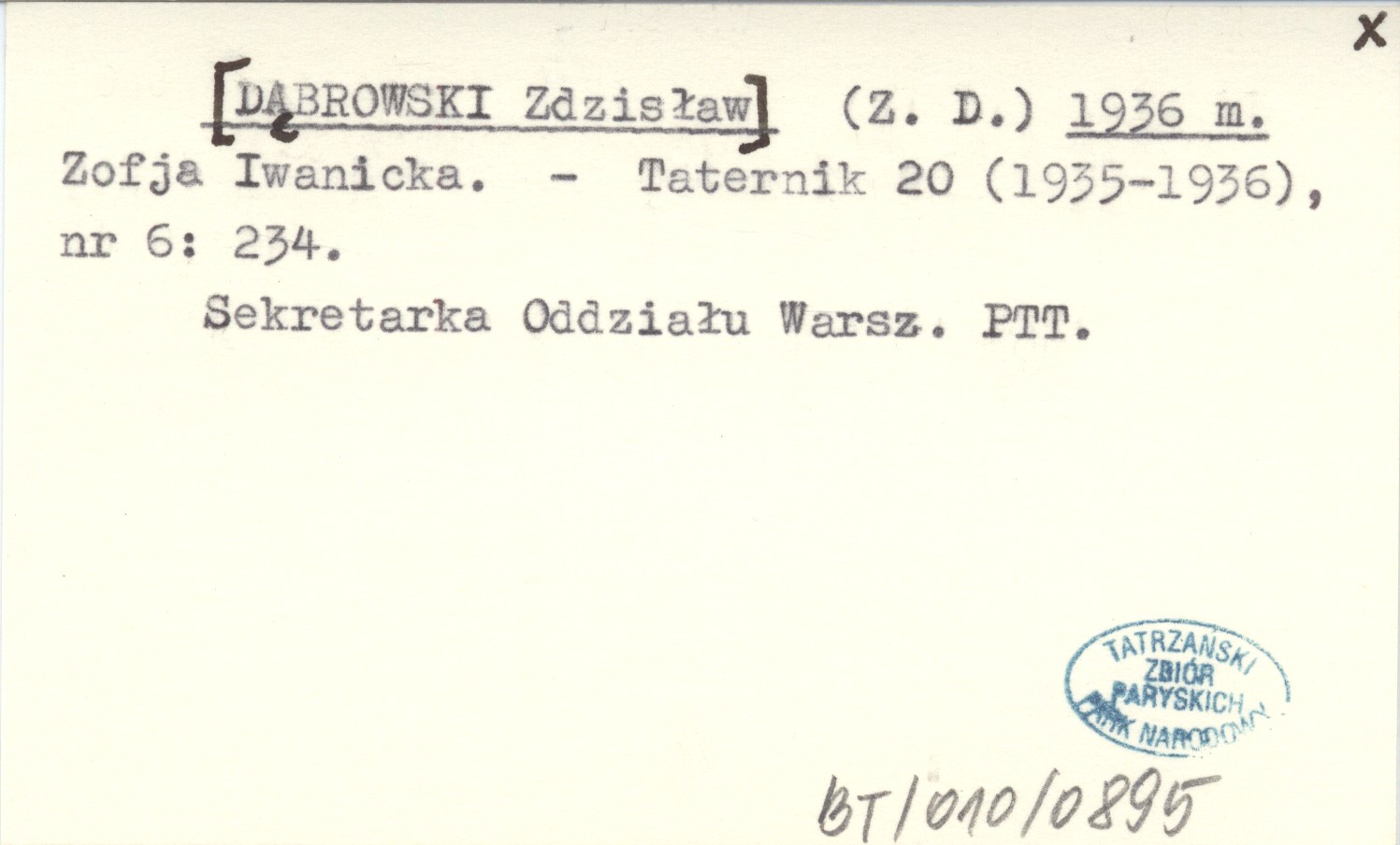 (Z. D.) [DĄBROWSKI Zdzisław] 1936 m Zofja Iwanicka.