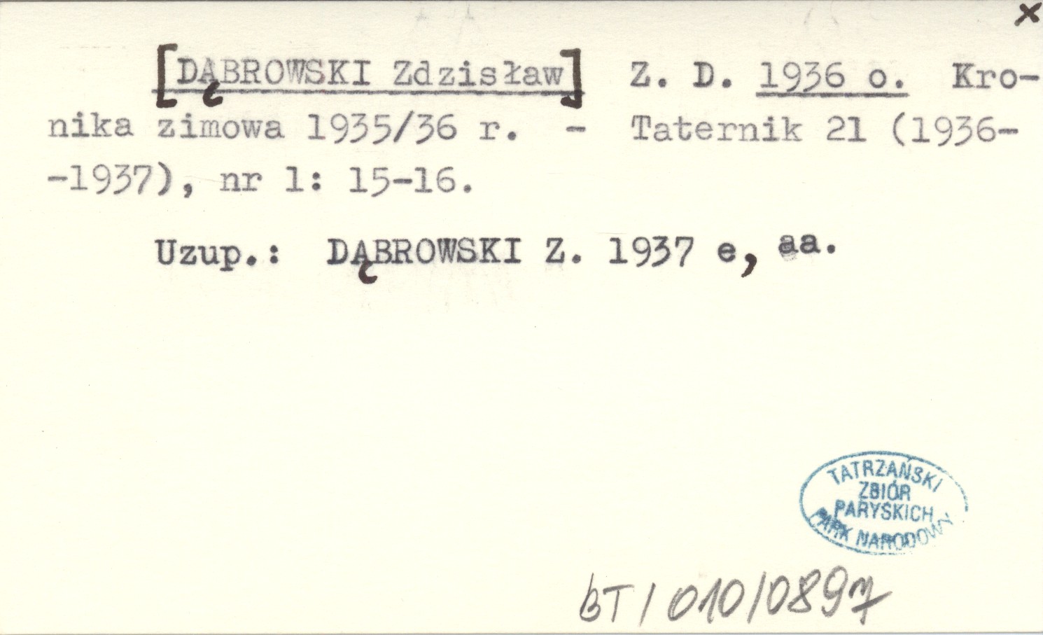 Taternik, 21 (1936-1937), nr 1: 15-16. Uzup.: DĄBROWSKI Z. 1937 e, aa.