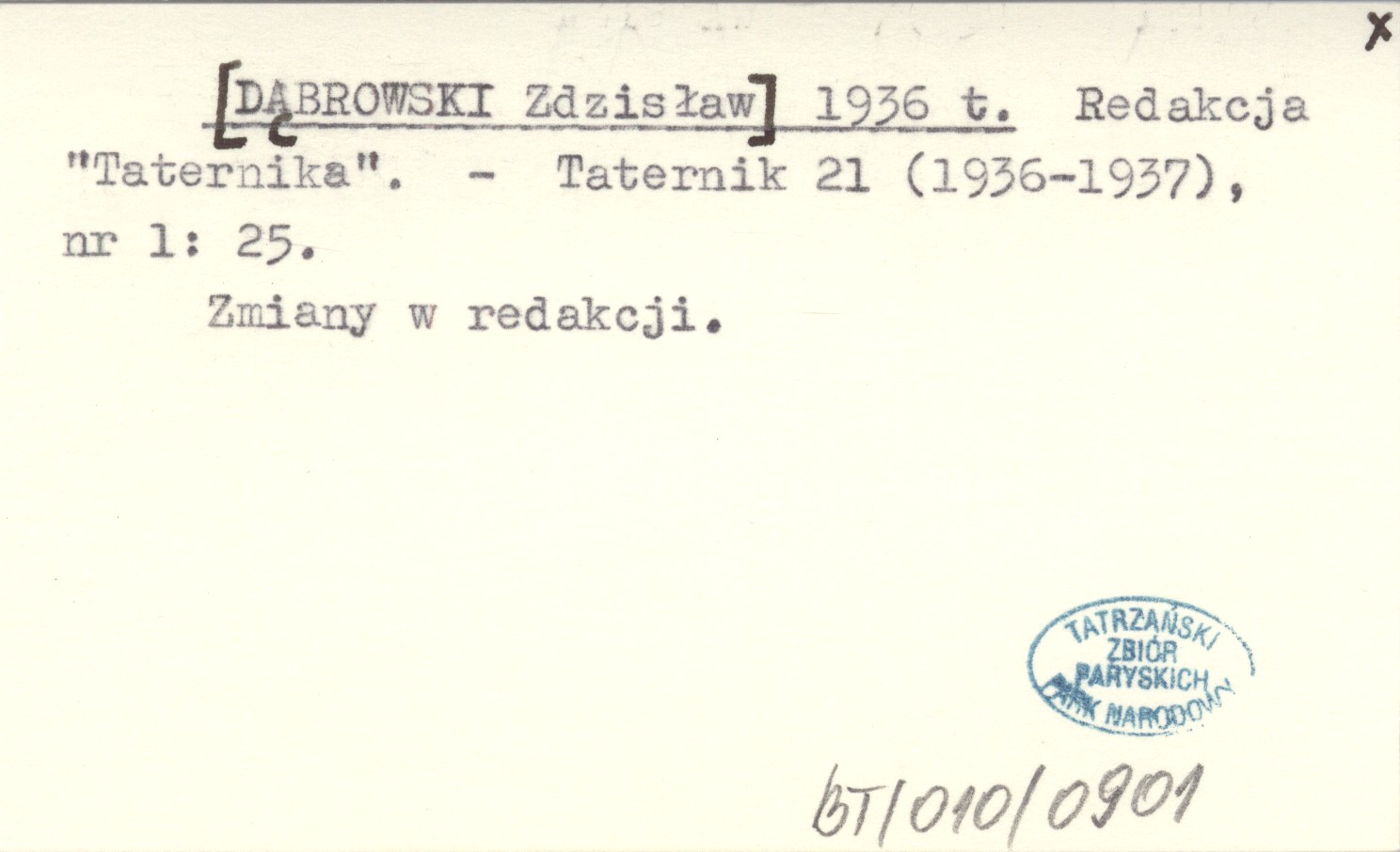 Taternik, 21 (1936-1937), nr 1: 25. Zmiany w redakcji.