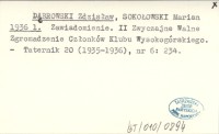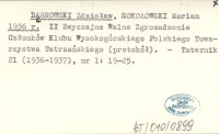 DˇBROWSKI Zdzisław SOKOŁOWSKI, Marian. ; 1936 r II Zwyczajne Walne Zgromadzenie Członków Klubu Wysokogórskiego Polskiego Towarzystwa Tatrzańskiego (protokół).