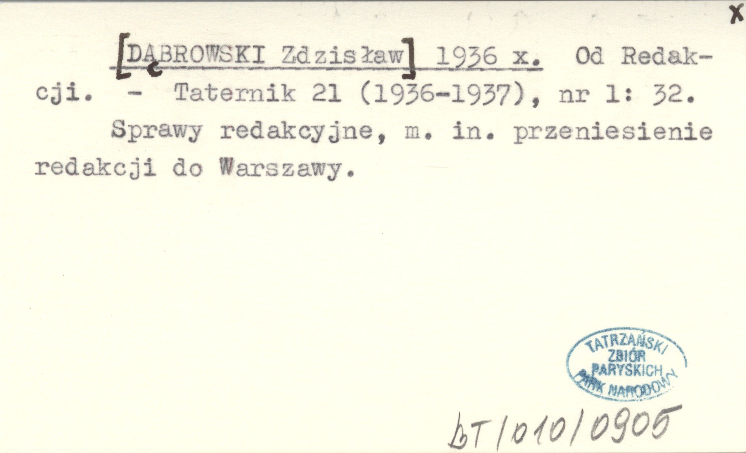 Taternik, 21 (1936-1937), nr 1: 32. Sprawy redakcyjne, m. in. przeniesienie redakcji do Warszawy.