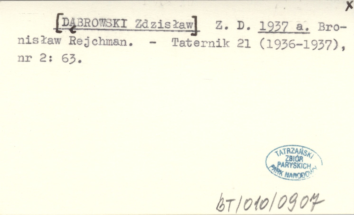 Z. D. [DĄBROWSKI Zdzisław] 1937 a Bronisław Rejchman.