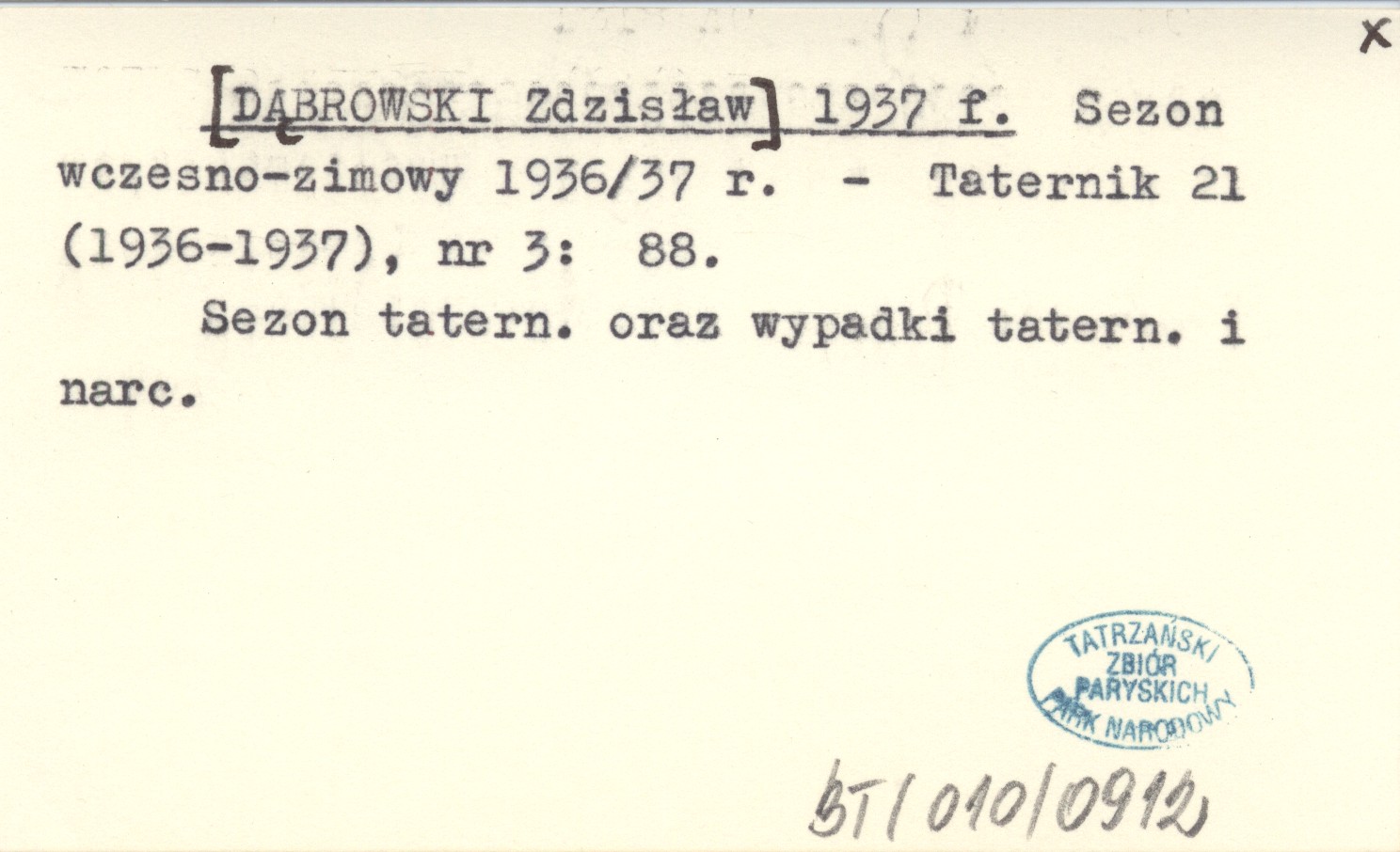 [DĄBROWSKI Zdzisław] 1937 f Sezon wczesno-zimowy 1936/37 r.