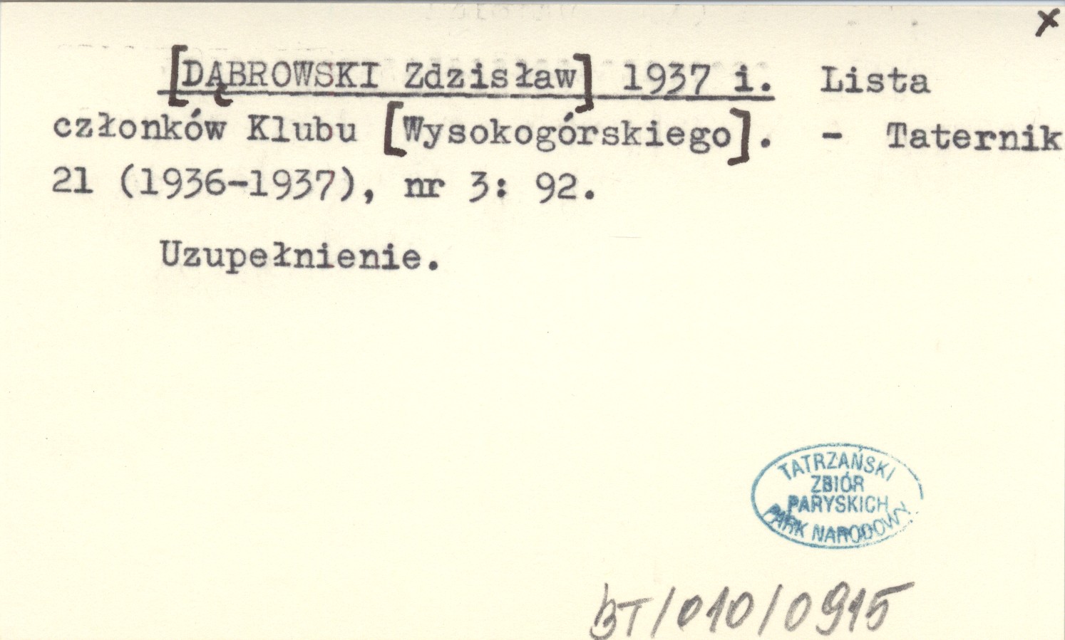 Taternik, 21 (1936-1937), nr 3: 92. Uzupełnienie.