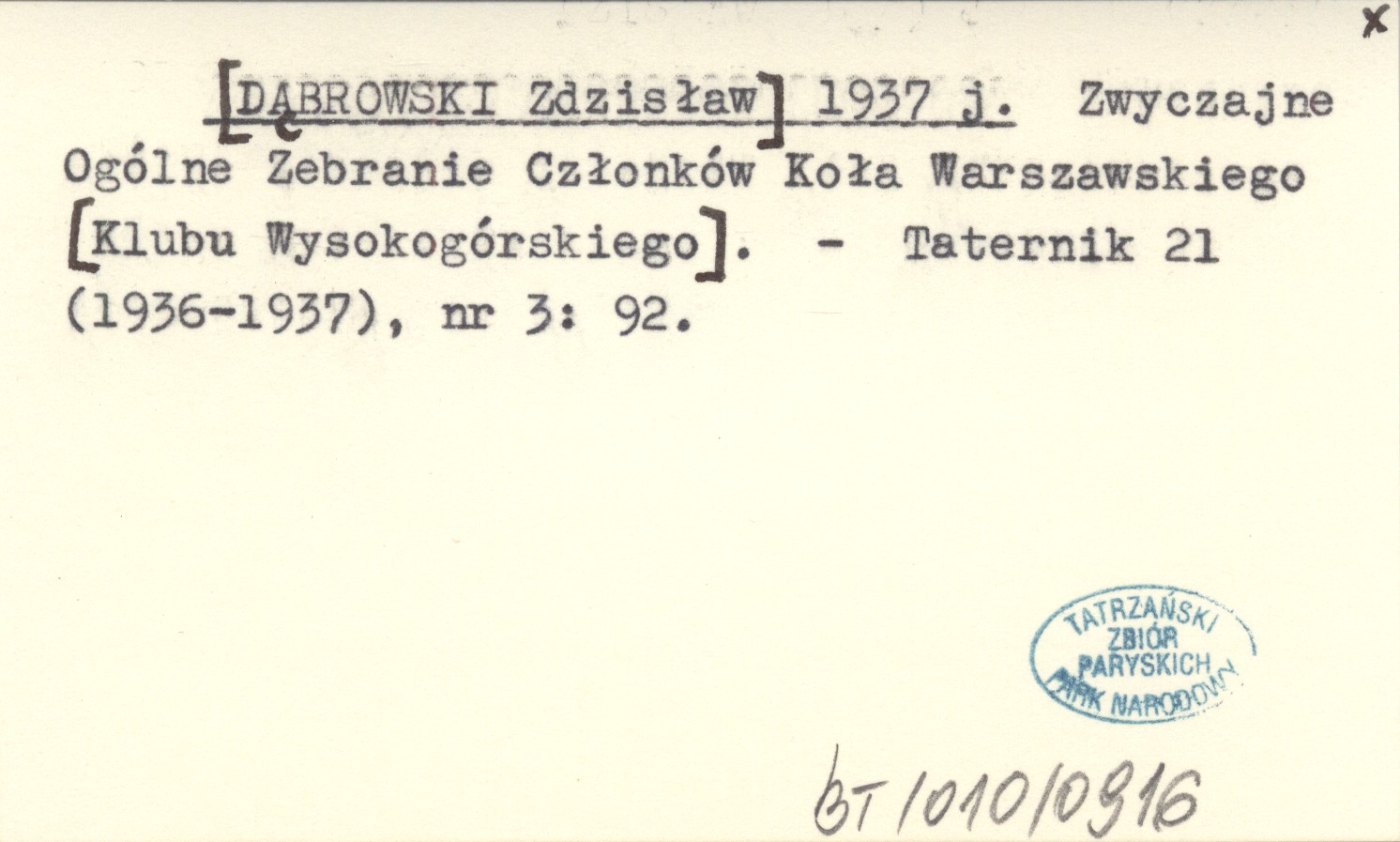 [DĄBROWSKI Zdzisław] 1937 j Zwyczajne Ogólne Zebranie Członków Koła Warszawskiego [Klubu Wysokogórskiego].