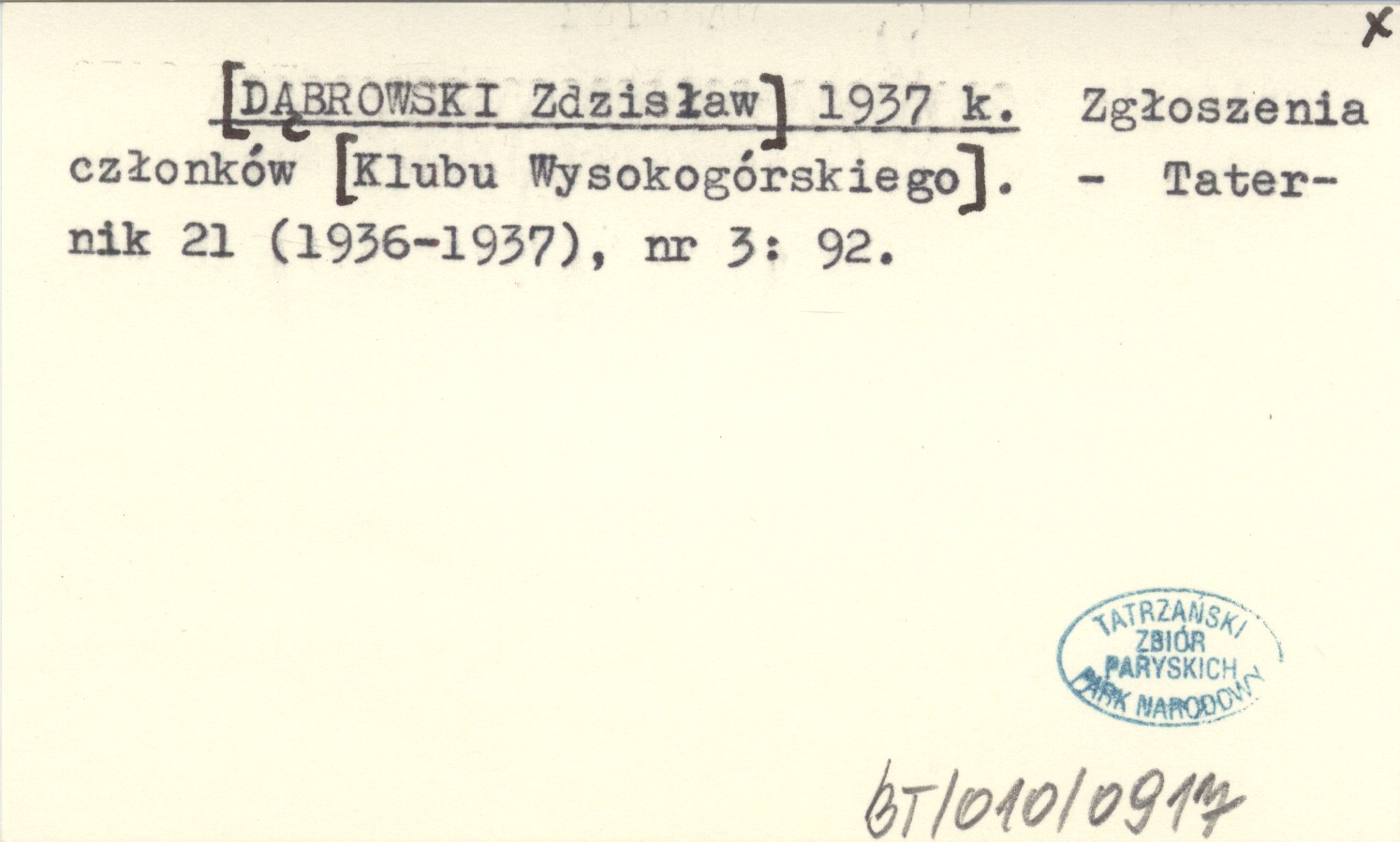 [DĄBROWSKI Zdzisław] 1937 k Zgłoszenia członków [Klubu Wysokogórskiego].