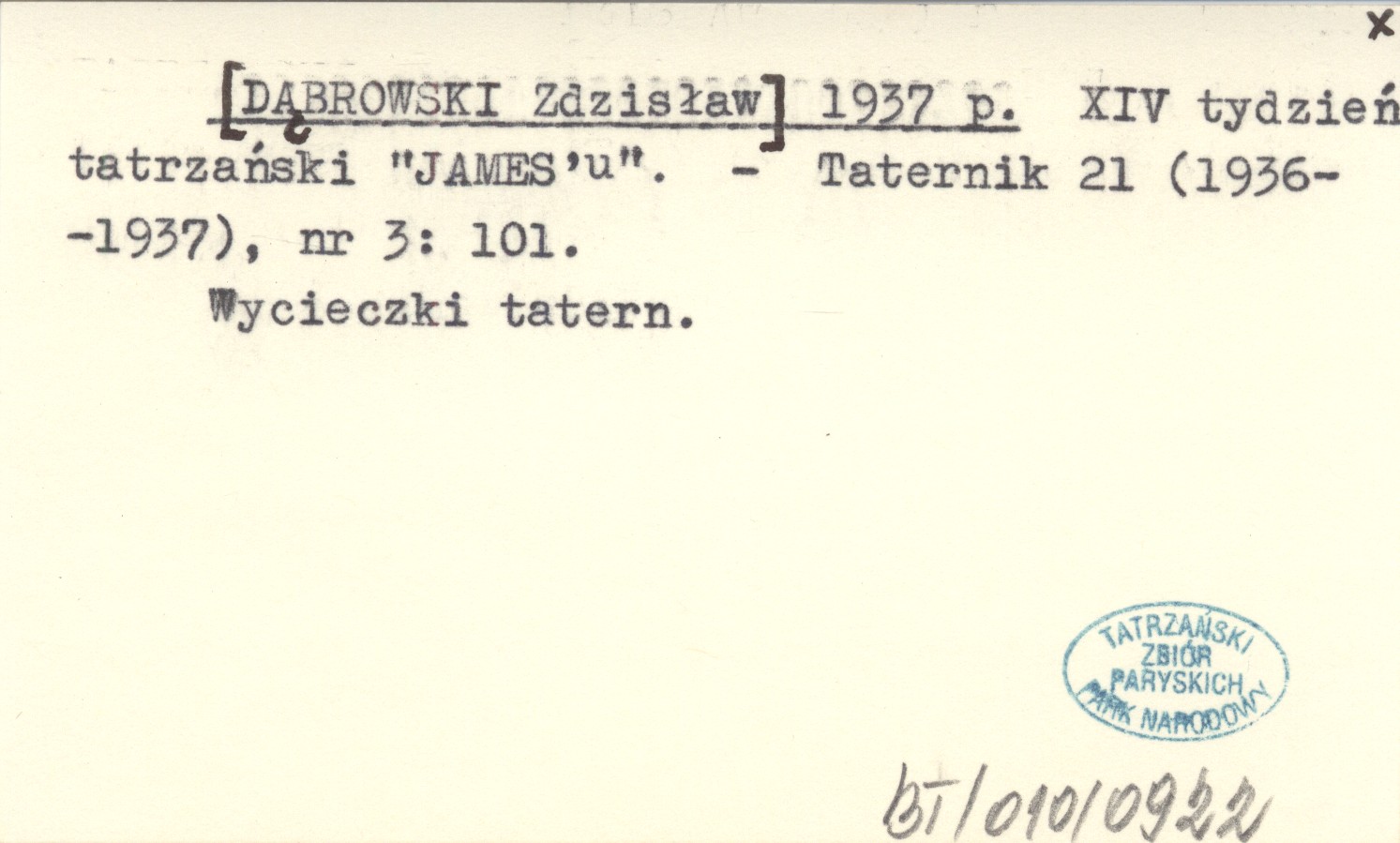 [DĄBROWSKI Zdzisław] 1937 p XIV tydzień tatrzański "JAMES'u".