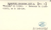 DĄBROWSKI Zdzisław 1937 u [Rec. o:] "Wierchy" 14 (1936).