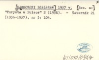 [DĄBROWSKI Zdzisław] 1937 v [Rec. o:] "Turysta w Polsce" 2 (1936).