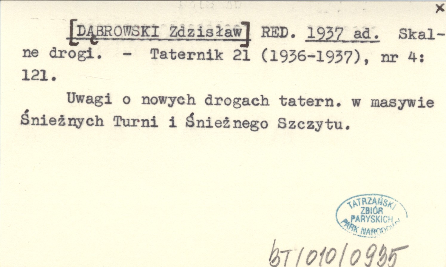 Taternik, 21 (1936-1937), nr 4: 121. Uwagi o nowych drogach taternickich w masywie Śnieżnych Turni i Śnieżnego Szczytu.