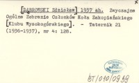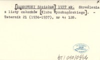 [DˇBROWSKI Zdzisław] 1937 ak Skre¶lenia z listy członków [Klubu Wysokogórskiego].