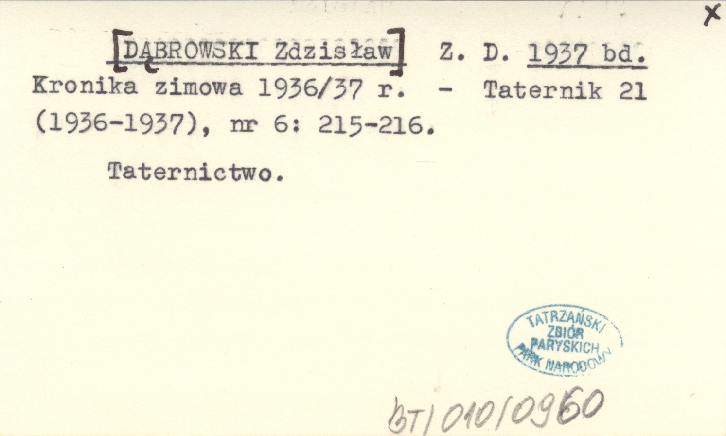 Z. D. [DĄBROWSKI Zdzisław] 1937 bd Kronika zimowa 1936/37 r.