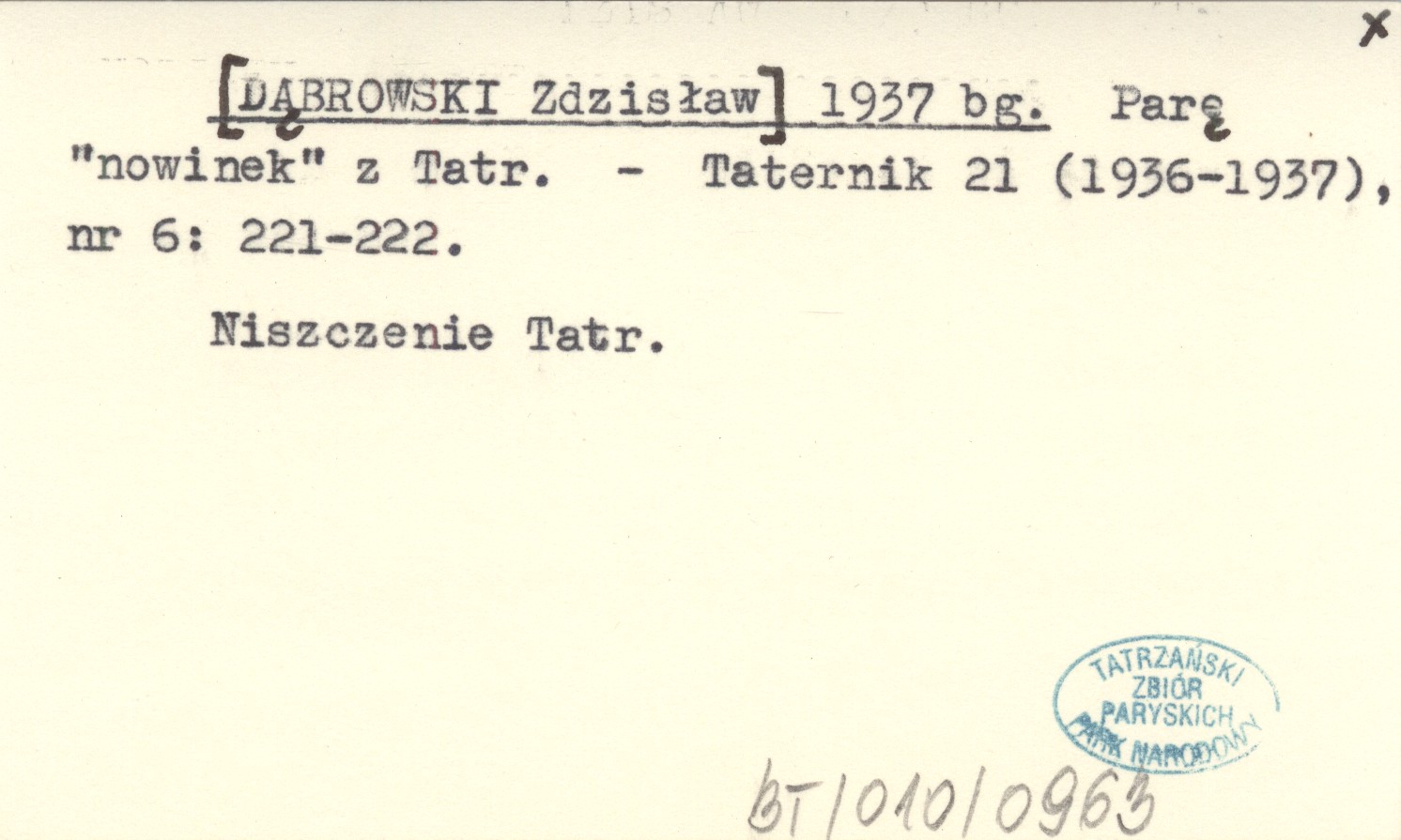 [DĄBROWSKI Zdzisław] 1937 bg Parę "nowinek" z Tatr.