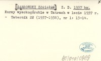 Z. D. [DˇBROWSKI Zdzisław] 1937 bm Kursy wysokogórskie w Tatrach w lecie 1937 r.