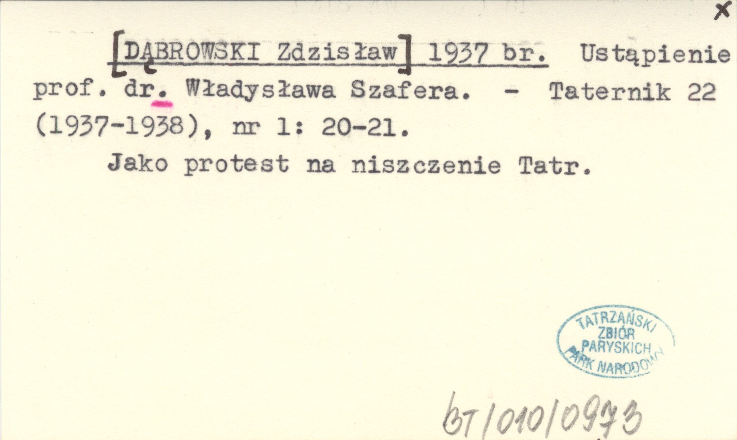 Taternik, 22 (1937-1938), nr 1: 20-21. Jako protest na niszczenie Tatr.