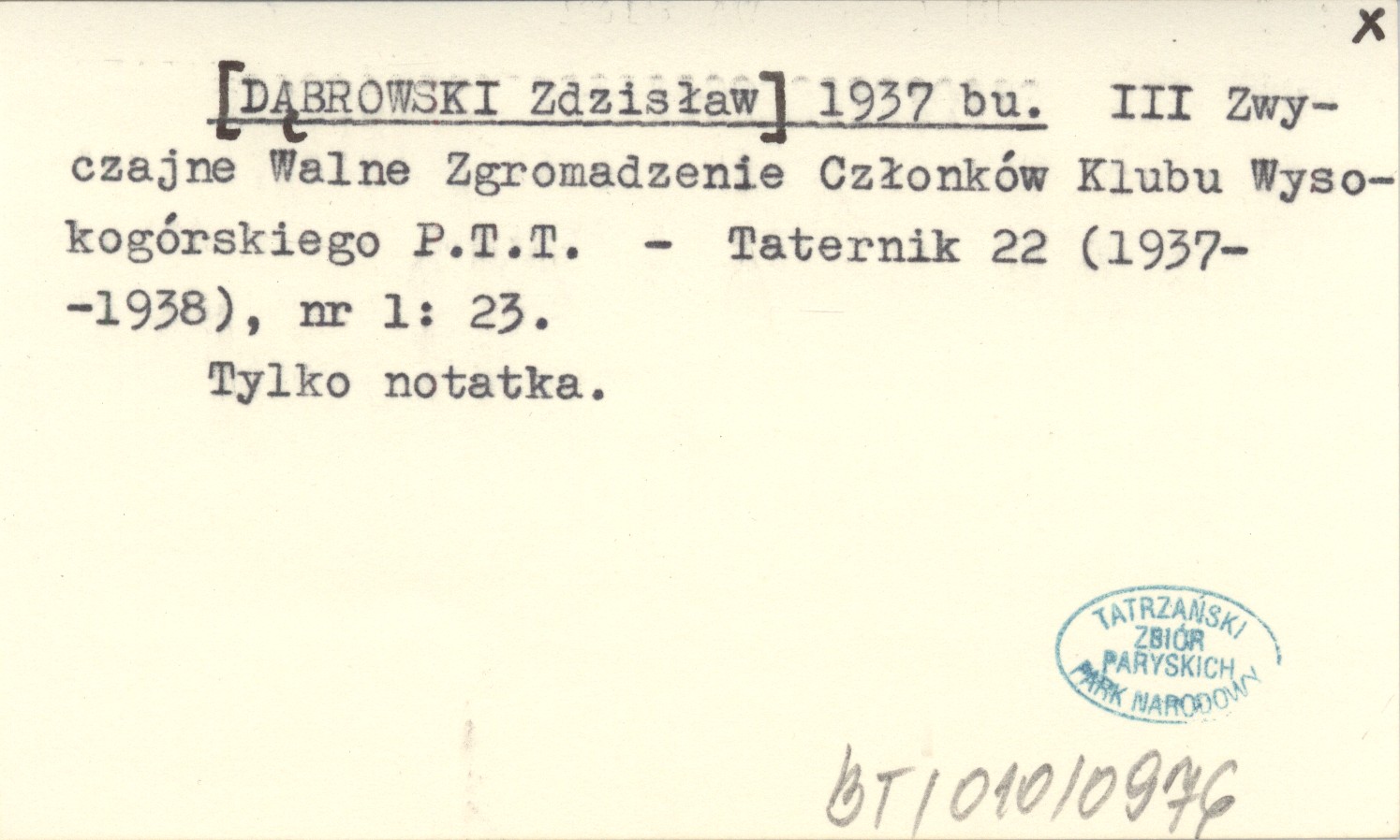 Taternik, 22 (1937-1938), nr 1: 23. Tylko notatka.