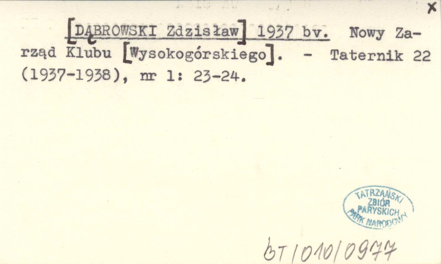 [DĄBROWSKI Zdzisław] 1937 bv Nowy Zarząd Klubu [Wysokogórskiego].