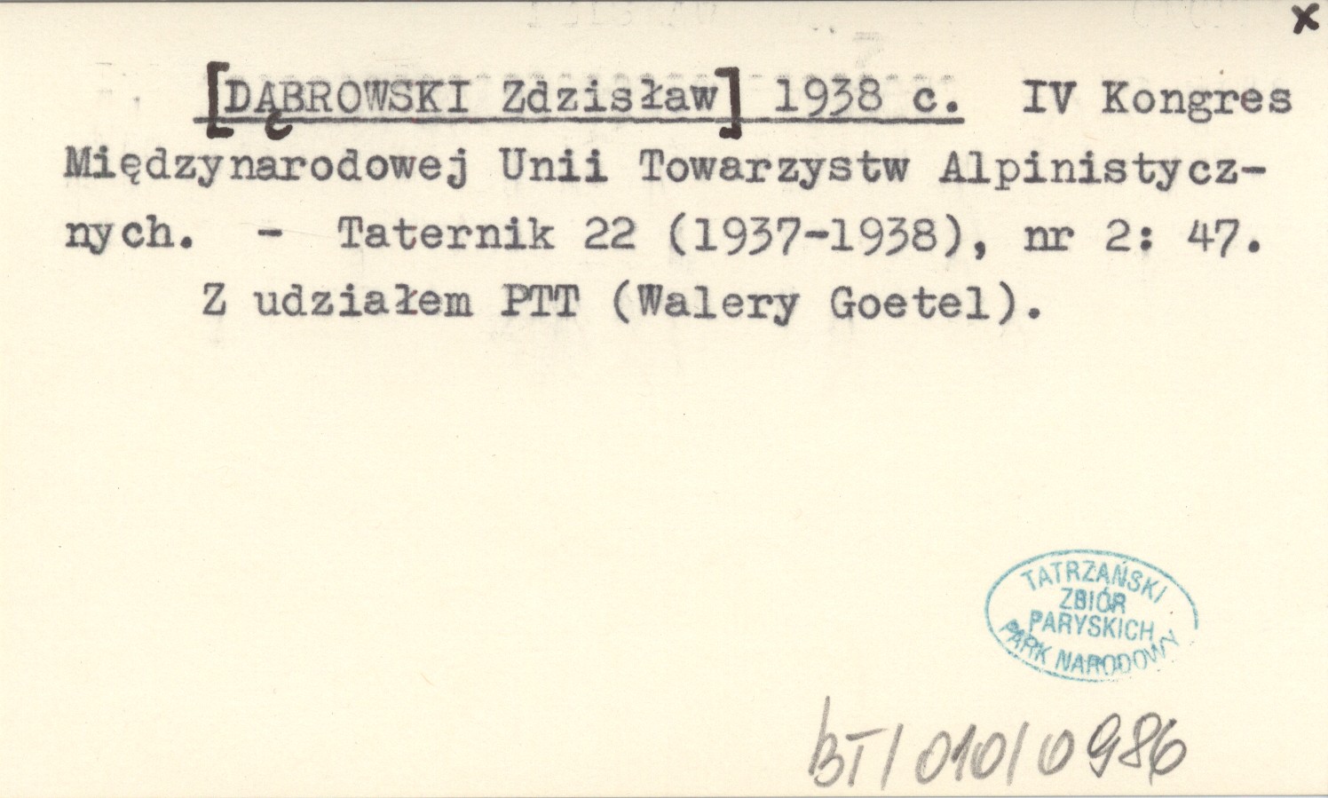 [DĄBROWSKI Zdzisław] 1938 c IV Kongres Międzynarodowej Unii Towarzystw Alpinistycznych.