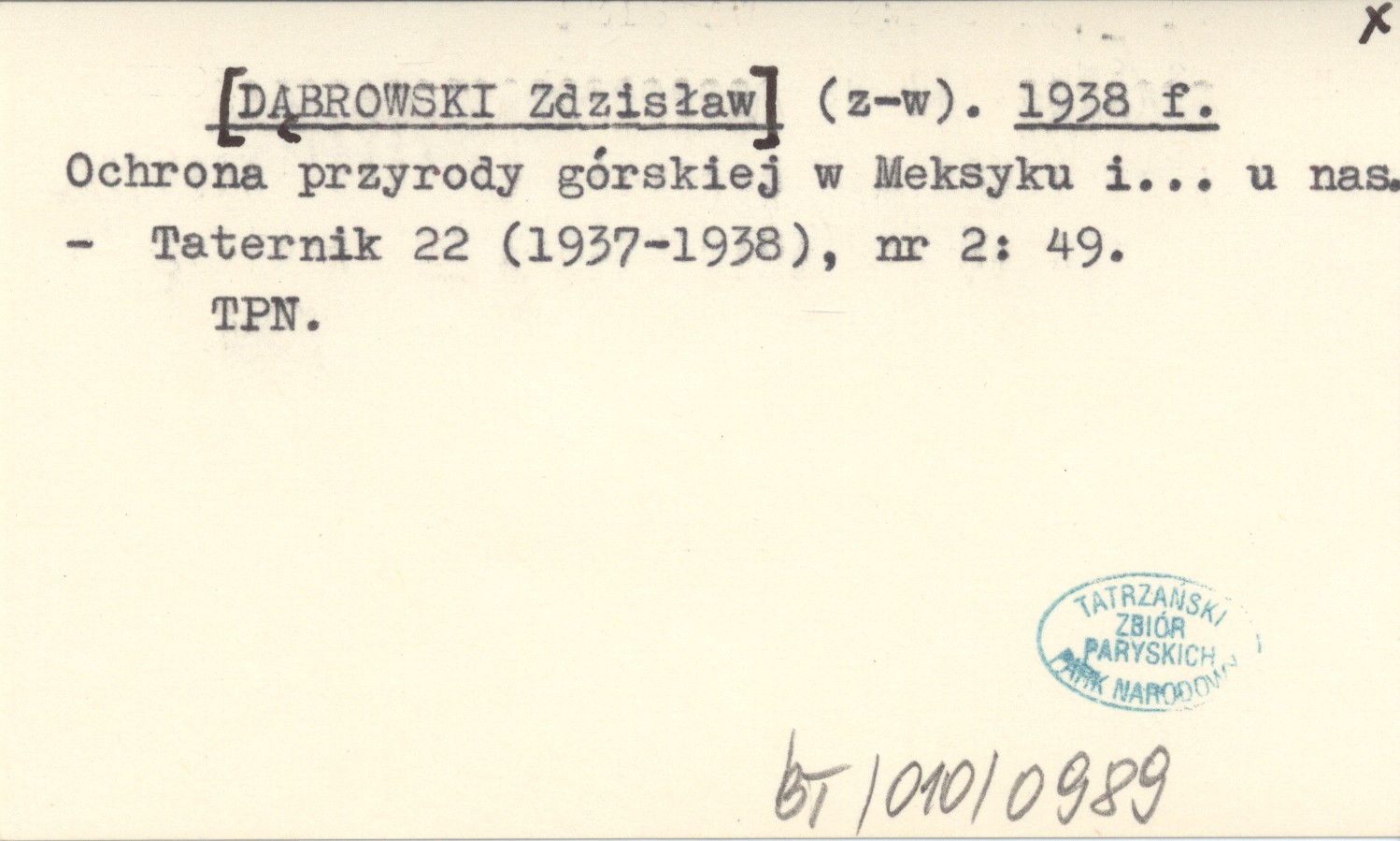 (z-w) [DĄBROWSKI Zdzisław] 1938 f Ochrona przyrody górskiej w Meksyku i ... u nas.