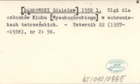 Red. [DˇBROWSKI Zdzisław] 1938 o [Inc.:] Ogłaszaj±c wspomnienie na temat zdobycia [...] wschodniej ¶ciany Łomnicy [...].