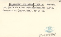 [DˇBROWSKI Zdzisław] 1938 m Warunki przyjęcia do Klubu Wysokogórskiego P.T.T.