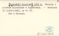[DˇBROWSKI Zdzisław] 1938 v Odczyty o polskim alpinizmie w Jugosławii.