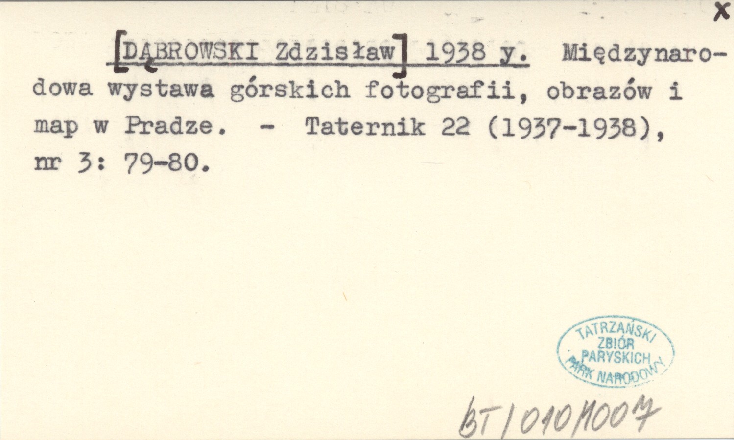 [DĄBROWSKI Zdzisław] 1938 y Międzynarodowa wystawa górskich fotografii, obrazów i map w Pradze.