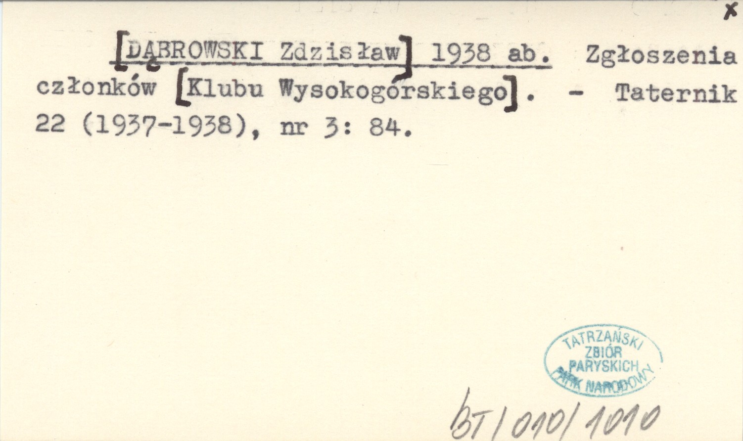 [DĄBROWSKI Zdzisław] 1938 ab Zgłoszenia członków [Klubu Wysokogórskiego].