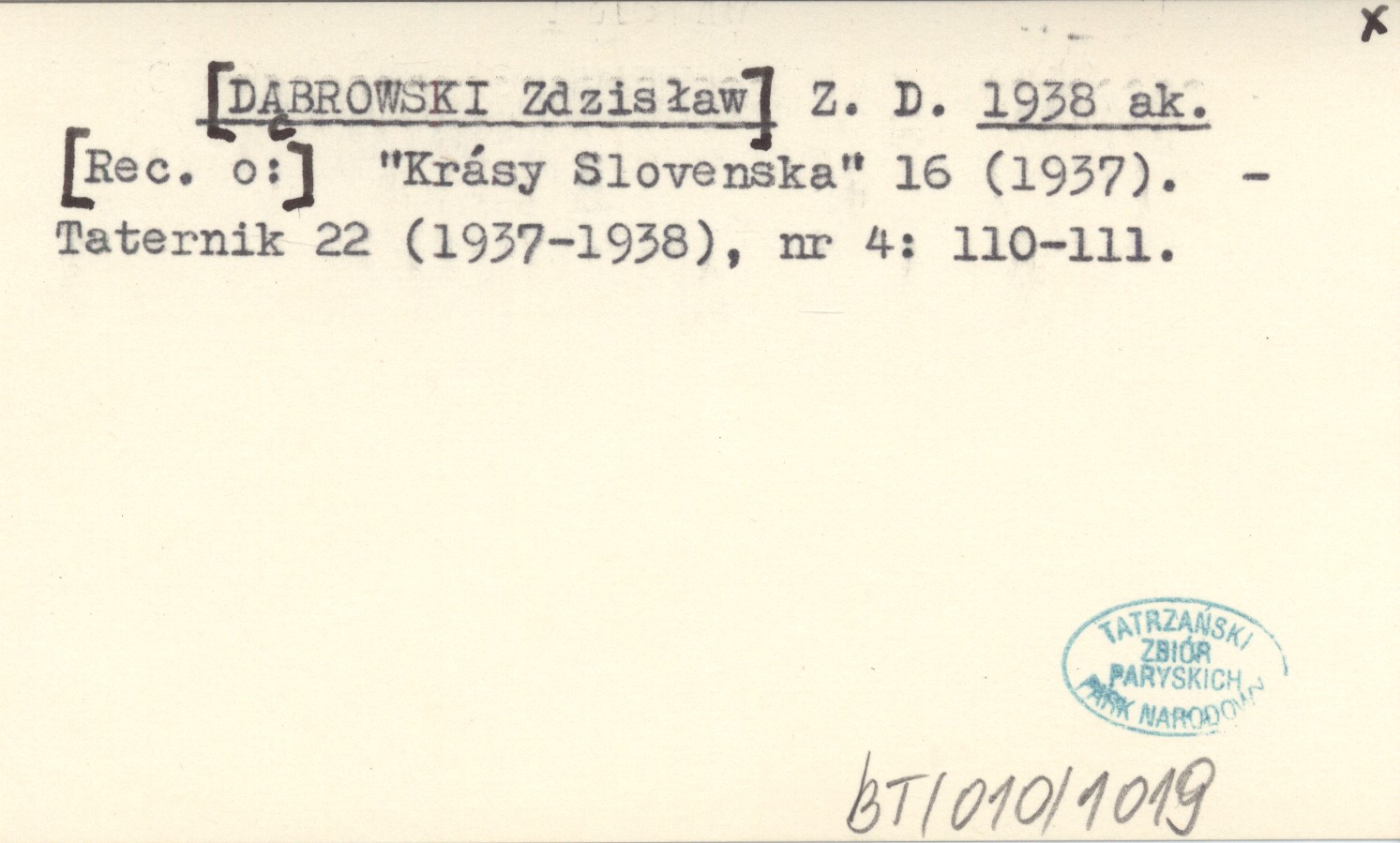 Z. D. [DĄBROWSKI Zdzisław] 1938 ak [Rec. o:] "Krásy Slovenska" 16 (1937).