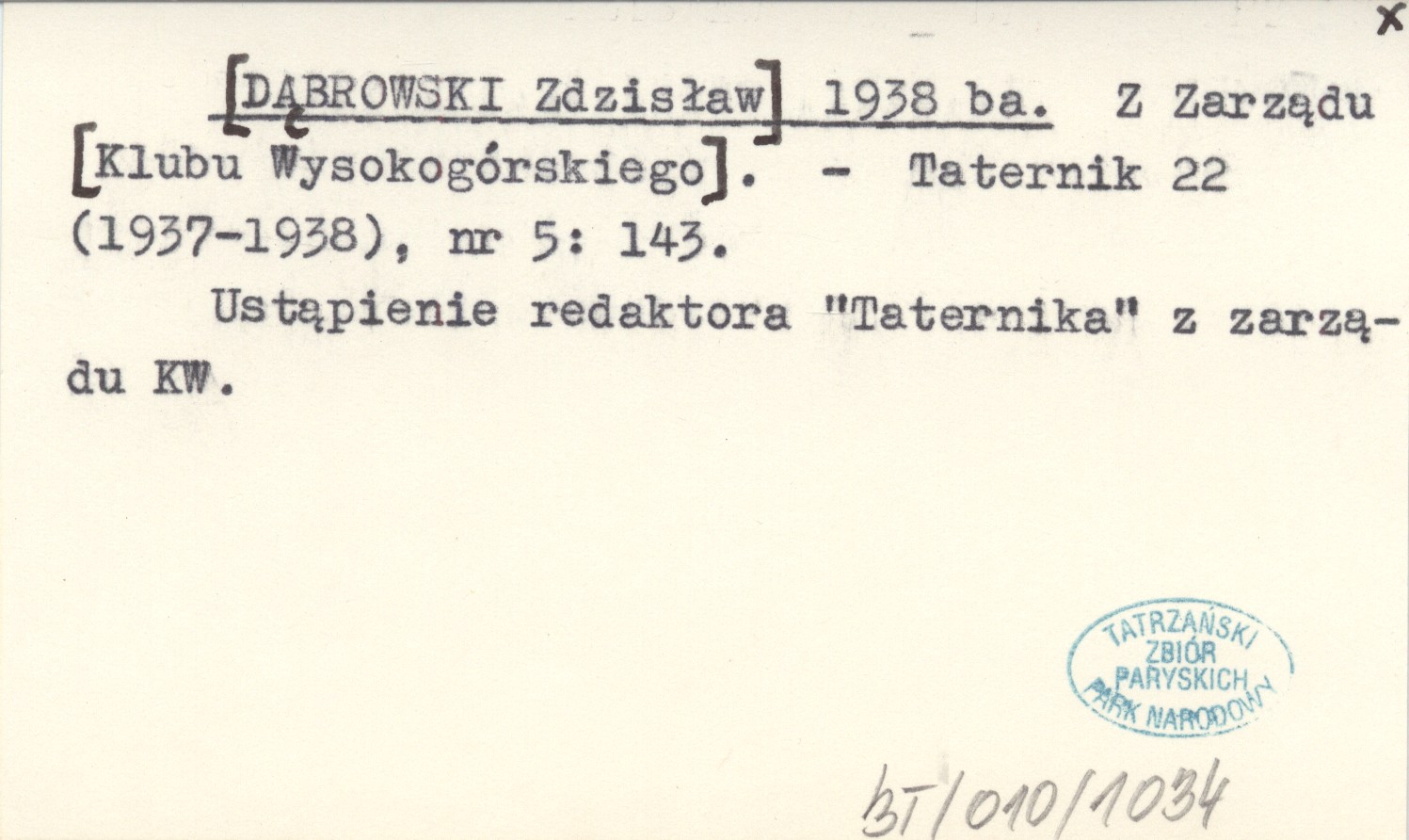 Taternik, 22 (1937-1938), nr 5: 143. Ustąpienie redaktora "Taternika" z zarządu KW.