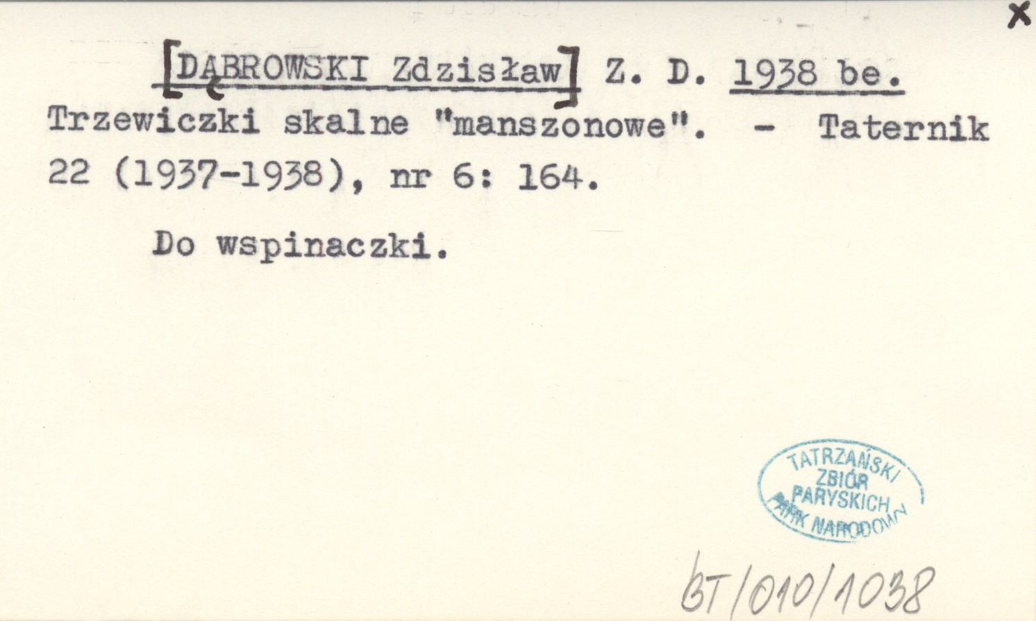 Z. D. [DĄBROWSKI Zdzisław] 1938 be Trzewiczki skalne "manszonowe".