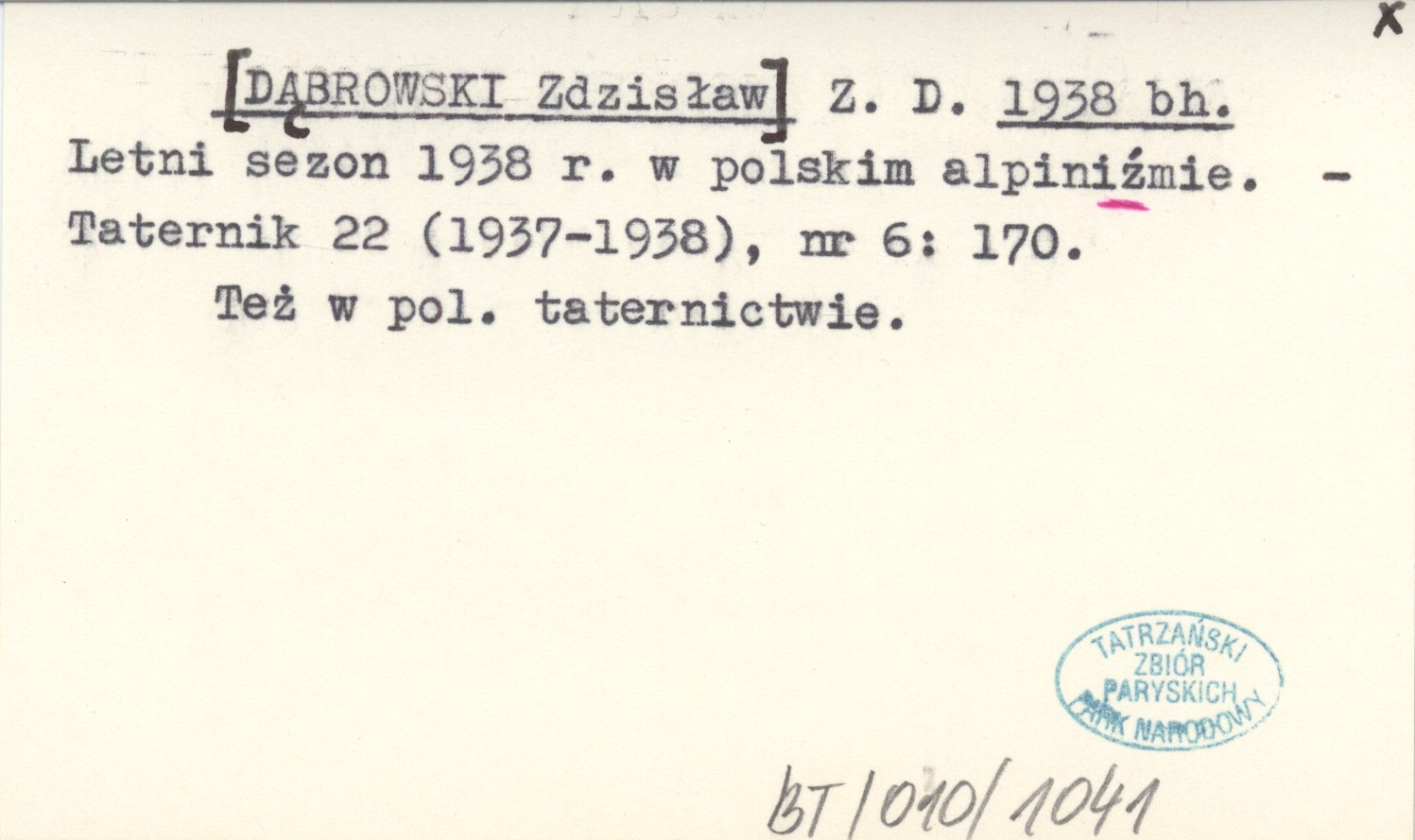 Z. D. [DĄBROWSKI Zdzisław] 1938 bh Letni sezon 1938 r. w polskim alipiniźmie.