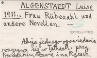 ALGENSTAEDT Luise 1911... Frau Rübezahl und andere Novellen.