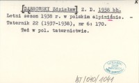 Z. D. [DˇBROWSKI Zdzisław] 1938 bh Letni sezon 1938 r. w polskim alipiniĽmie.