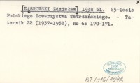 [DˇBROWSKI Zdzisław] 1938 bi 65-lesie Polskiego Towarzystwa Tatrzańskiego.