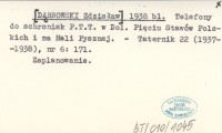 [DˇBROWSKI Zdzisław] 1938 bl Telefony do schronisk P.T.T. w Dol. Pięciu Stawów Polskich i na Hali Pysznej.