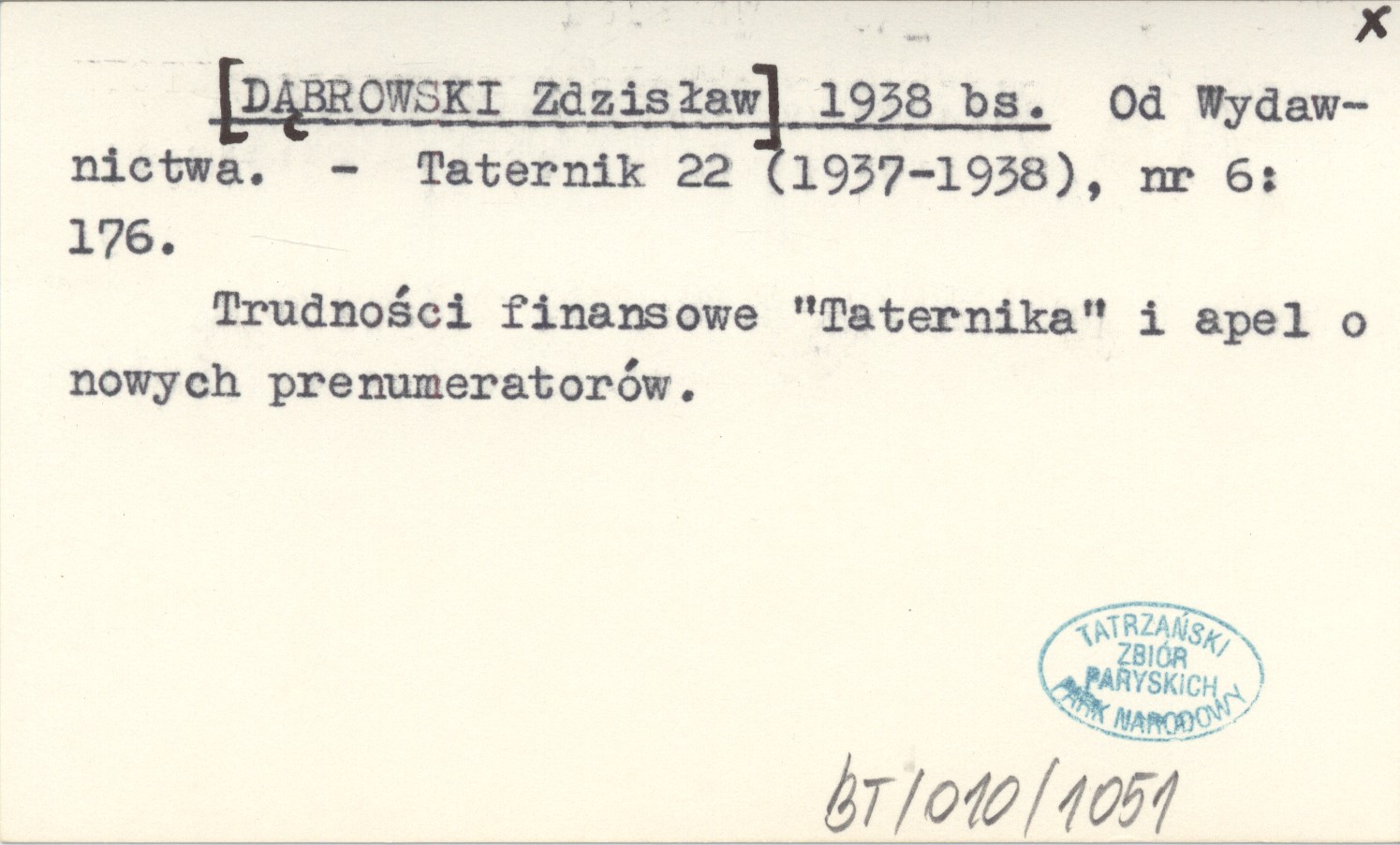 Taternik, 22 (1937-1938), nr 6: 176. Trudności finansowe "Taternika" i apel o nowych prenumeratorów.