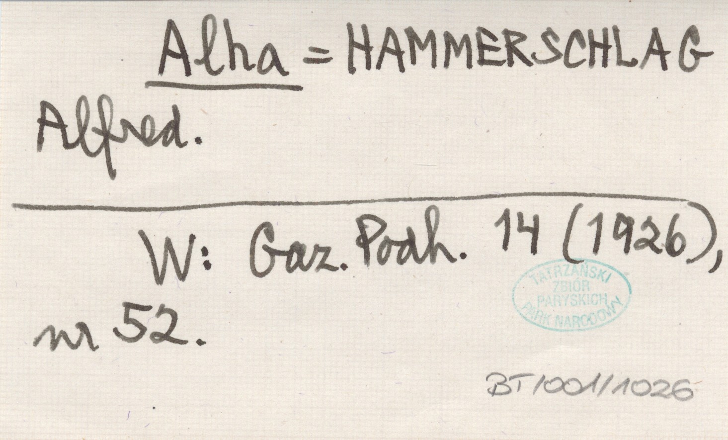 Alha HAMMERSCHLAG Alfred Gazeta Podhalańska 14 (1926), nr 52.