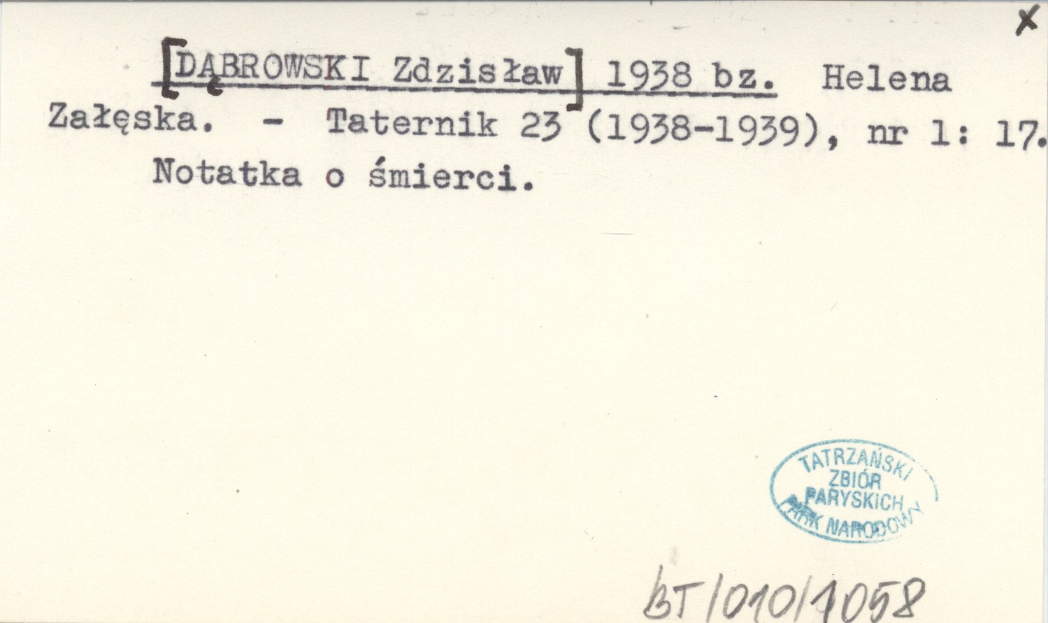 Taternik, 23 (1938-1939), nr 1: 17. Notatka o śmierci.