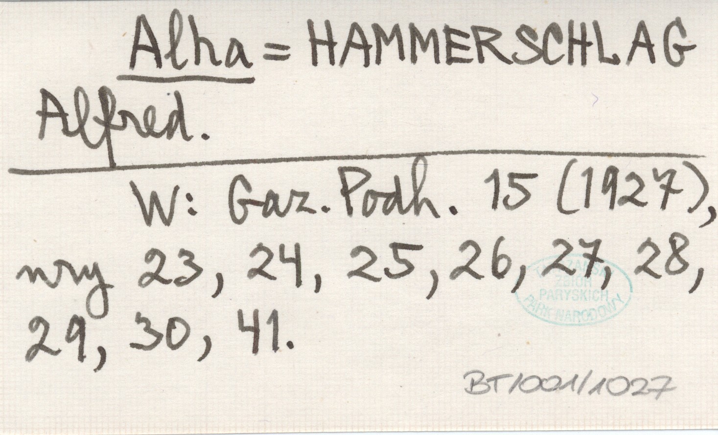 Alha HAMMERSCHLAG Alfred Gazeta Podhalańska 15 (1927), nr 23, 24, 25, 26, 27, 28, 29, 30, 41.