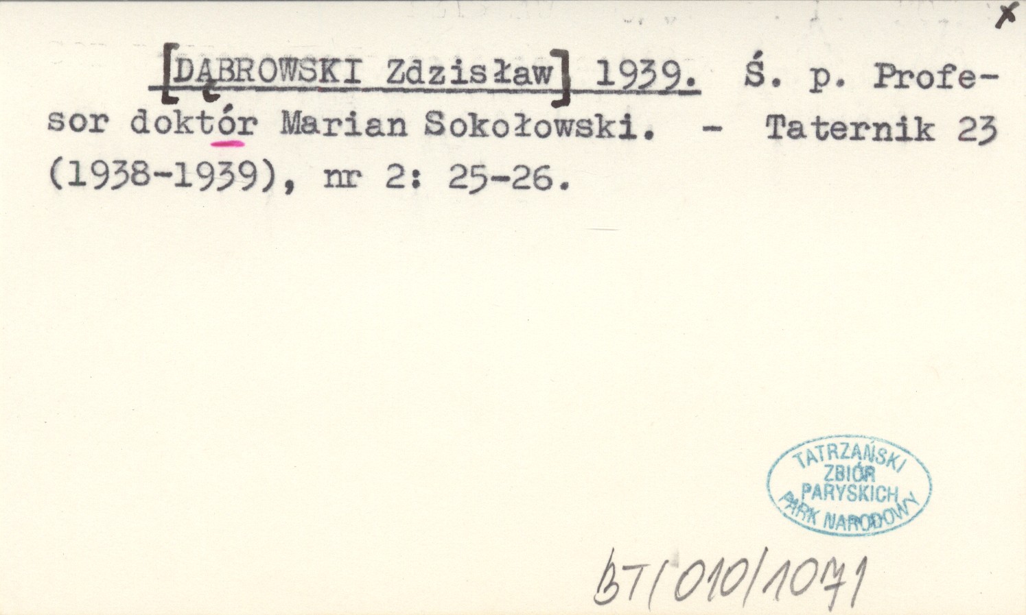 [DĄBROWSKI Zdzisław] 1939 Ś. p. Profesor doktór Marian Sokołowski.