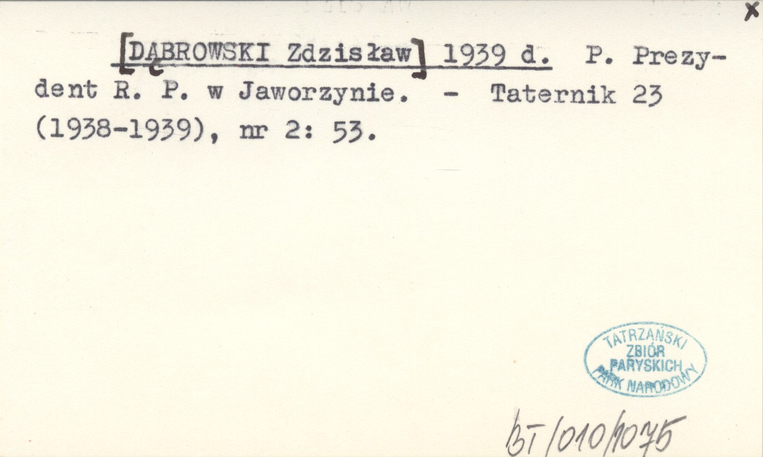 [DĄBROWSKI Zdzisław] 1939 d P. Prezydent R. P. w Jaworzynie.