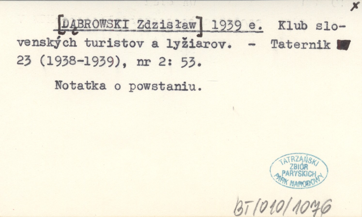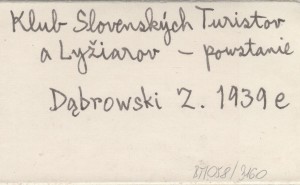 [DĄBROWSKI Zdzisław] 1939 e Klub solvenských turistov a lyžiarov.