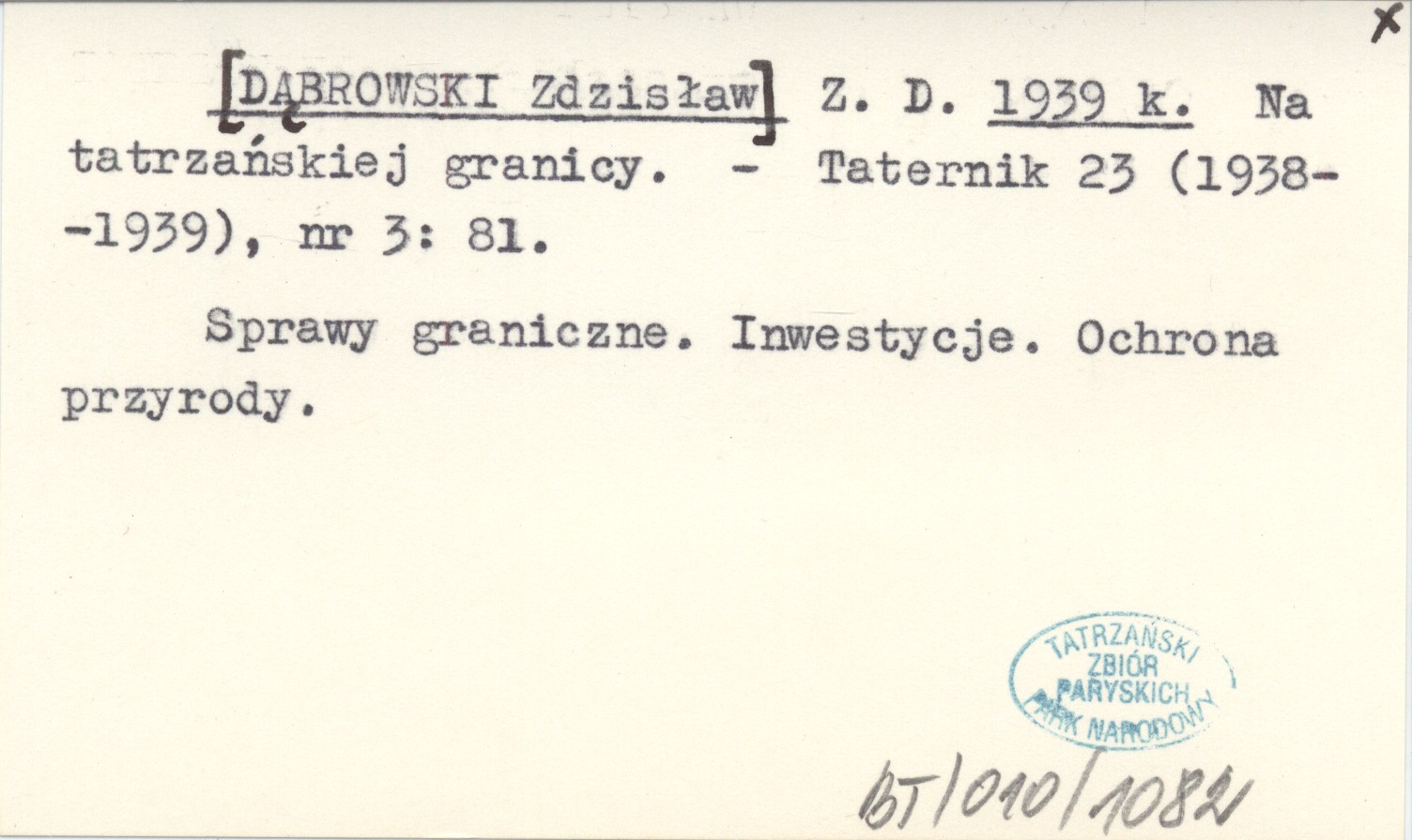Z. D. [DĄBROWSKI Zdzisław] 1939 k Na tatrzańskiej granicy.
