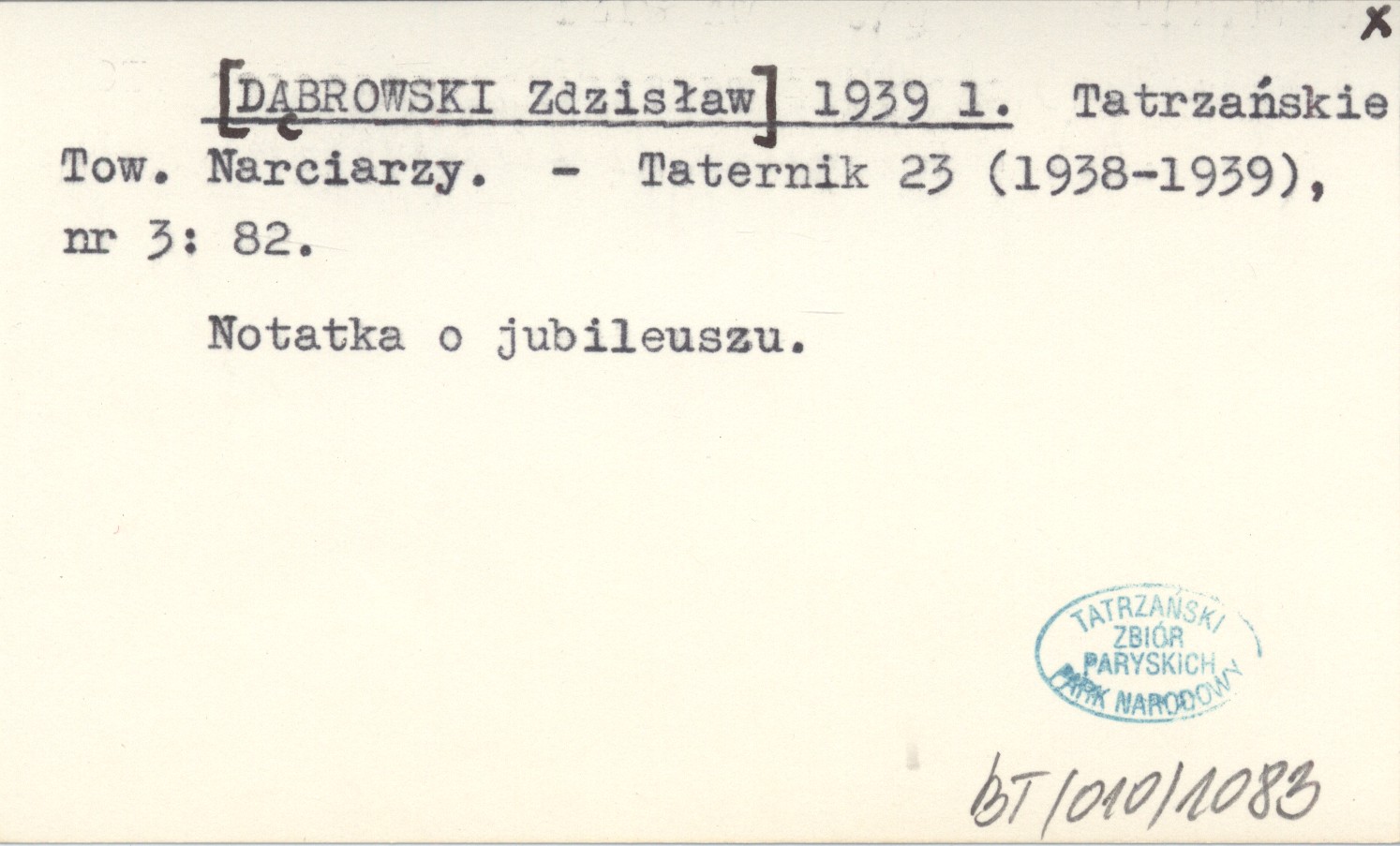 [DĄBROWSKI Zdzisław] 1939 l Tatrzańskie Tow. Narciarzy.
