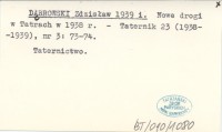 DĄBROWSKI Zdzisław 1939 i Nowe drogi w Tatrach w 1938 r.