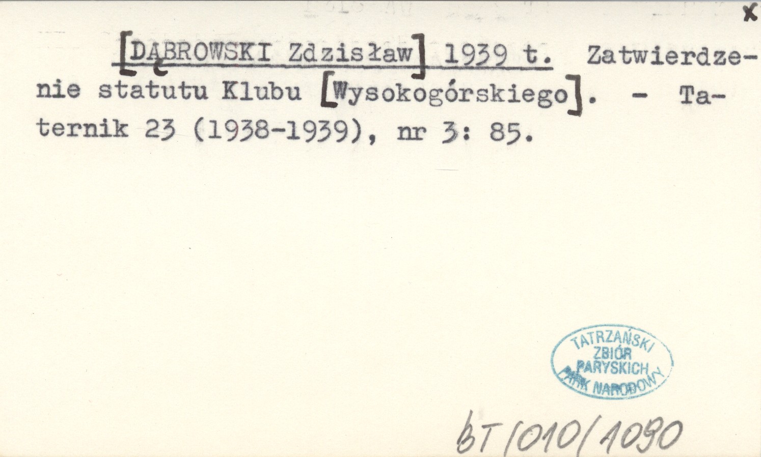[DĄBROWSKI Zdzisław] 1939 t Zatwierdzenie statutu Klubu [Wysokogórskiego].